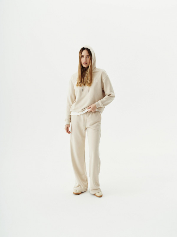 Штани з колекції WEEKEND WEAR  – незамінна річ у твоєму гардеробі. Штани мають вільний крій та трендову довжину максі. Пояс на резинці, яка регулюється шнурівкою, забезпечує зручну посадку та комфортне носіння.